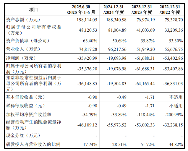 2022年至2024年,公司归母净利润分别为-5.34亿元、-6.17亿元和-1.91亿元。2025年全年归母净利润为-4.81亿元,扣非归母净利润为-4.89亿元。2025年上半年归母净利润为-3.54亿元。截至2025年6月末,公司未分配利润为-94,455.35万元,存在未弥补亏损。