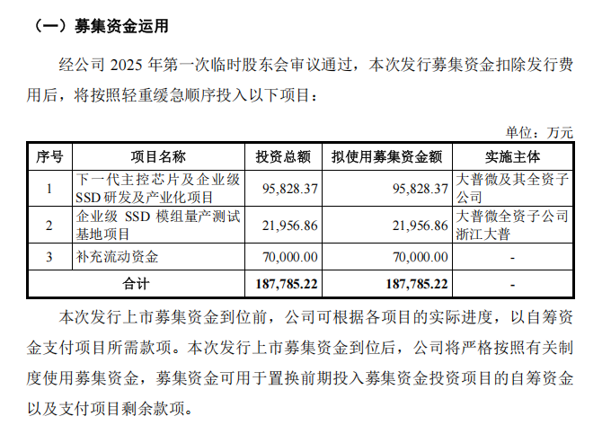 与大部分科创公司一样,其亏损主要来自公司高强度的研发投入。据招股书,2022年至2024年累计研发投入金额为7.3亿元,占累计营业收入36.15%。大普微上市募集资金也将主要用于研发,主要包括下一代主控芯片及企业级SSD研发及产业化项目,以及企业级 SSD模组量产测试基地项目。未来,随着公司持续进行研发投入,全年预计研发费用较上年同比大幅增长30%以上。