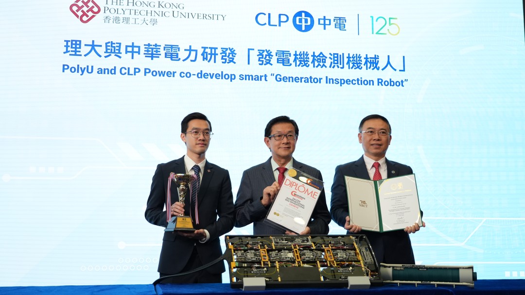 香港理工大學16日宣佈,校方與中華電力有限公司合作研發智能「發電機檢測機械人」,將機械人科技結合光纖傳感技術應用於發電機檢測,突破了傳統依靠人手檢測的局限。