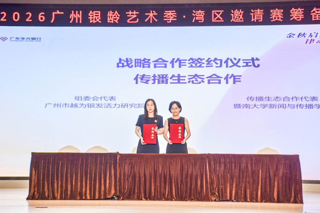 银龄艺术的广泛传播,离不开专业力量赋能与传播模式创新。在传播生态合作签约环节,组委会代表广州市越为银发活力研究院与传播生态合作代表暨南大学新闻与传播学院正式达成战略合作,让高校的专业传播力量与深耕银龄领域的社会组织优势互补,携手构建创新传播矩阵。
