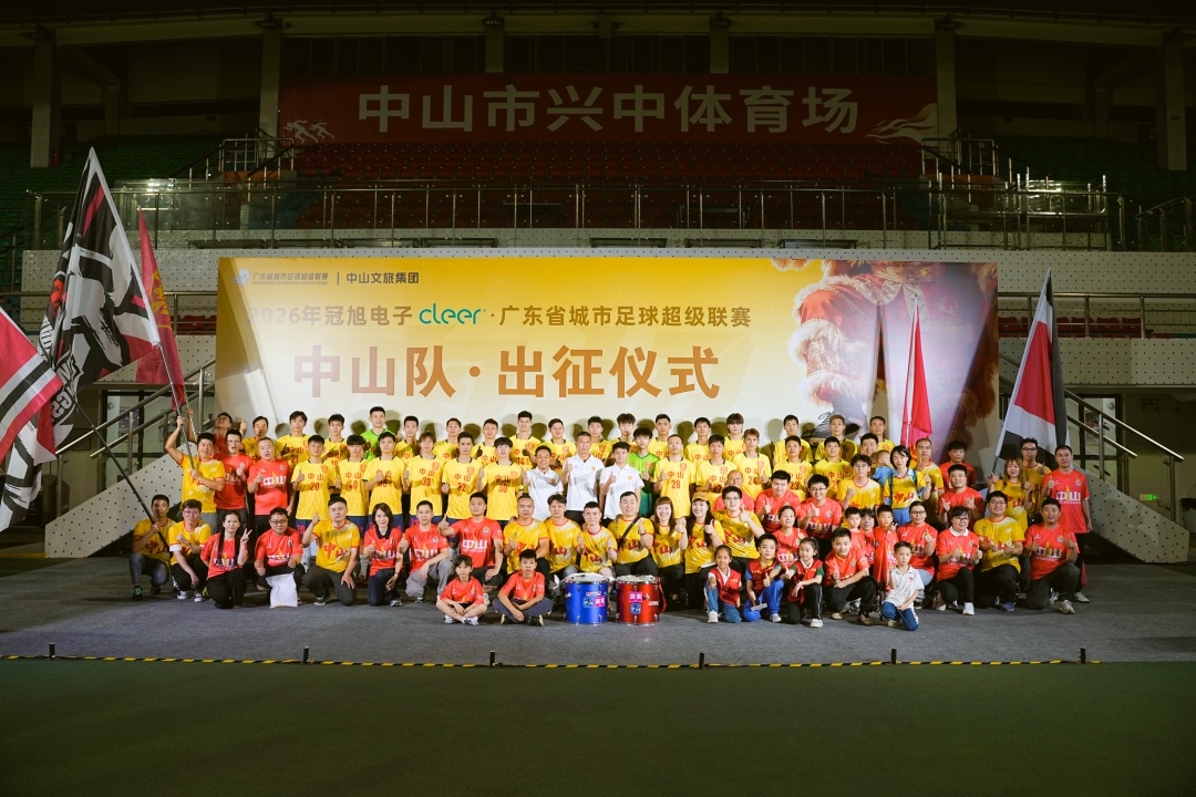 4月15日晚,2026年广东省城市足球联赛(以下简称“粤超”)中山代表队出征活动在粤超中山赛区主场——兴中体育场顺利举行。35名中山足球健儿集结完毕、整装待发,将身披城市战袍奔赴粤超赛场,为家乡荣誉而战。