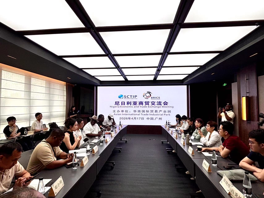 在2026年本届广交会举办之际,尼日利亚工业培训基金(ITF)代表团由其总干事Afiz Oluwatoyin Ogun带领来穗参观广交会并进行商贸交流。4月17日上午,华南国际贸易产业园、金航丝路国际贸易发展(广州)有限公司在广州金融城萨和酒店会议室召开了“尼日利亚商贸交流会”,花都区商务局、广东岭南职业技术学院、来自华南各地相关行业的优秀企业负责人以及华东、华南国际贸易产业园负责人出席了会议。
