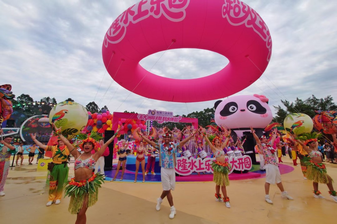 “超级全球玩水圈”五大洲际主题玩水新体验于当日同步开启,一站式解锁多元环球风情:东南亚风情玩水圈里,泰式风情歌舞轮番上演,将异域氛围感拉满;西欧盛夏玩水圈里欧式鼓乐演奏搭配地中海漫天泡泡秀,让游客一秒开启沉浸式欧洲阳光度假模式;亚马逊雨林玩水圈主打松弛疗愈,搭配舒缓的集体瑜伽体验,在玩水慢时光中舒展身心、释放压力;热辣拉丁玩水圈则以热情桑巴派对、水上漂浮舞台、动感水上尊巴等项目点燃夏日激情,让游客沉浸式感受南美奔放气息;夏威夷沙滩玩水圈是亲子家庭的欢乐天地,草裙舞派对轮番上演,夏威夷水城里孩子们尽情撒欢嬉戏,每一刻都定格着温馨的亲子欢乐时光。