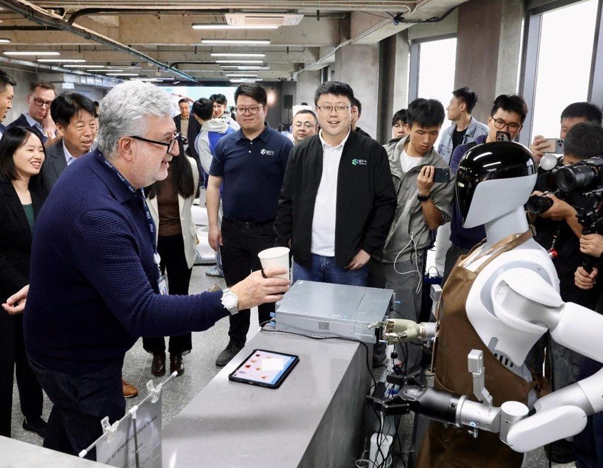 在该园区内,“爱宝机器人咖啡厅”已成为标志性落地案例。这不是一次性演示,而是面向真实客流、持续服务的商业实体。“爱宝”独立完成从制作、出品到交互的全流程。该场景在落地初期即承担了全球级高规格接待任务,背后是从模型能力到真实服务的完整闭环。