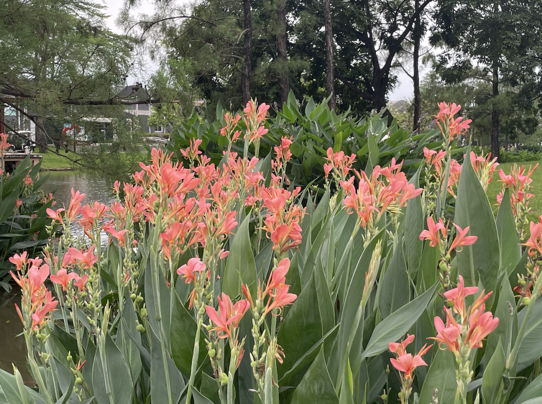 除了泰国樱花,公园内的美人蕉目前也正值花期。工作人员透露,再过两个月,园内荷花将盛放,欢迎市民届时前来参观打卡。