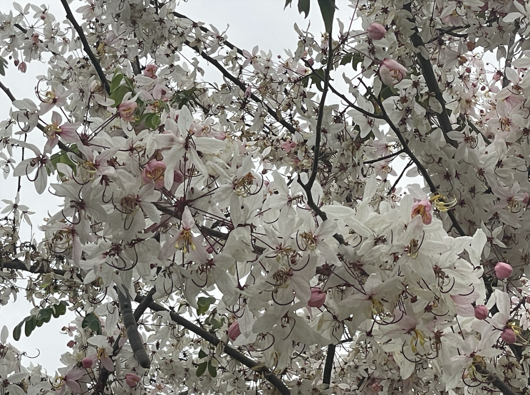 公园工作人员介绍,这批花旗木于2021年左右种植,每年3至4月开花。今年由于高温潮湿、湿地公园阳光充足、水分充沛,花开得格外灿烂,花量饱满,几乎不见树叶,满树繁花热闹却不张扬,成为园内当之无愧的“颜值担当”。工作人员日常也做好保养,定期修枝、驱虫,确保花木健康生长。
