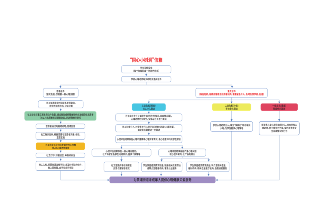 项目构建了严密的四级风险筛查机制,学校心理教师每日筛查信件,将信件风险等级分为普通、轻度、中度、紧急四类:普通信件由志愿者一周内回复,做好情绪安抚和正面引导;一旦发现涉及极端情况,当即启动紧急介入机制,由班主任、心理教师和专业社工组成“三人小组”,第一时间对接学生、开展专业疏导,后续联动家校社力量持续跟进,确保风险有效化解。