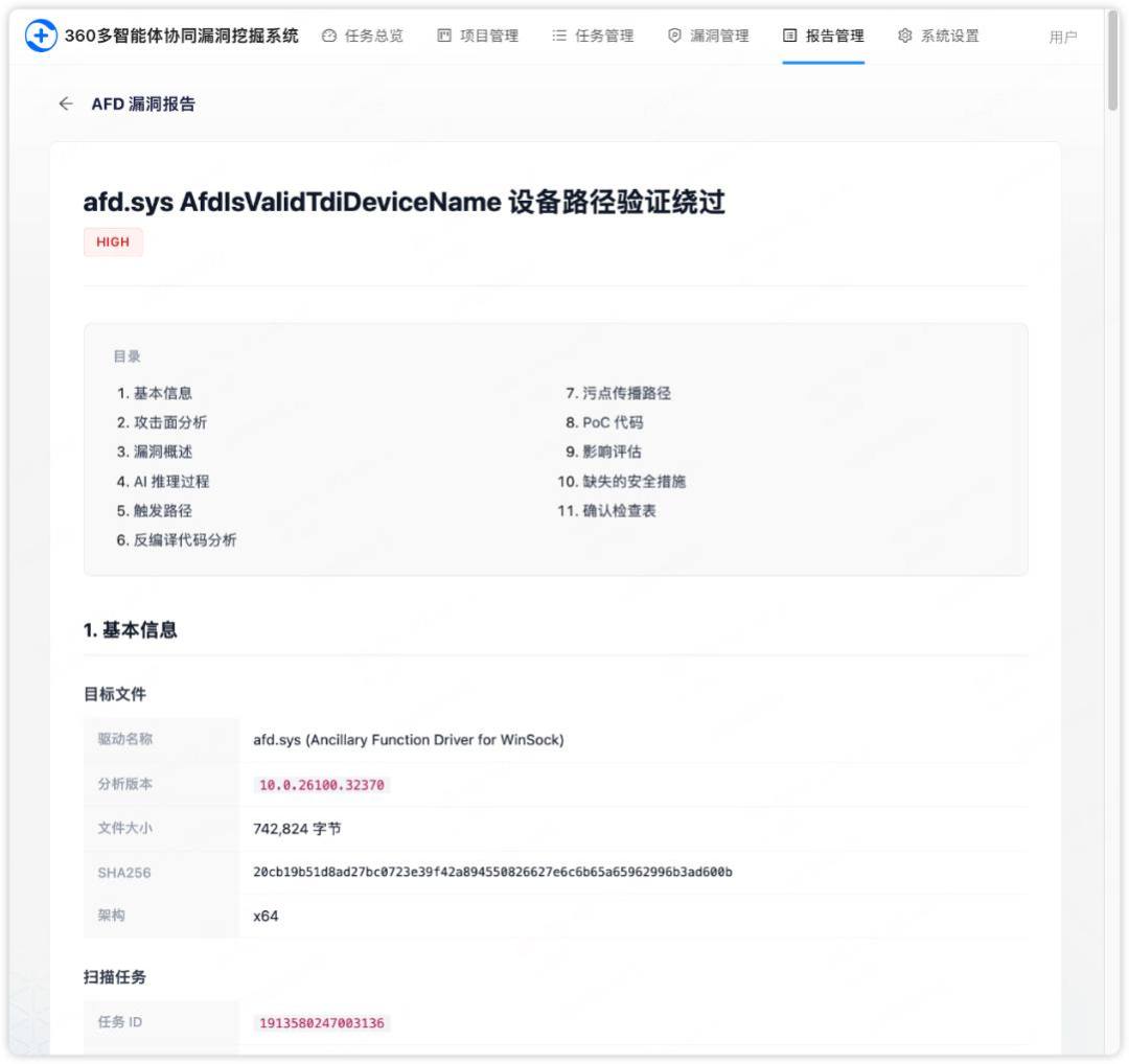 360漏洞挖掘智能体自动化生成Windows内核提权漏洞(CVE-2026-24293)报告