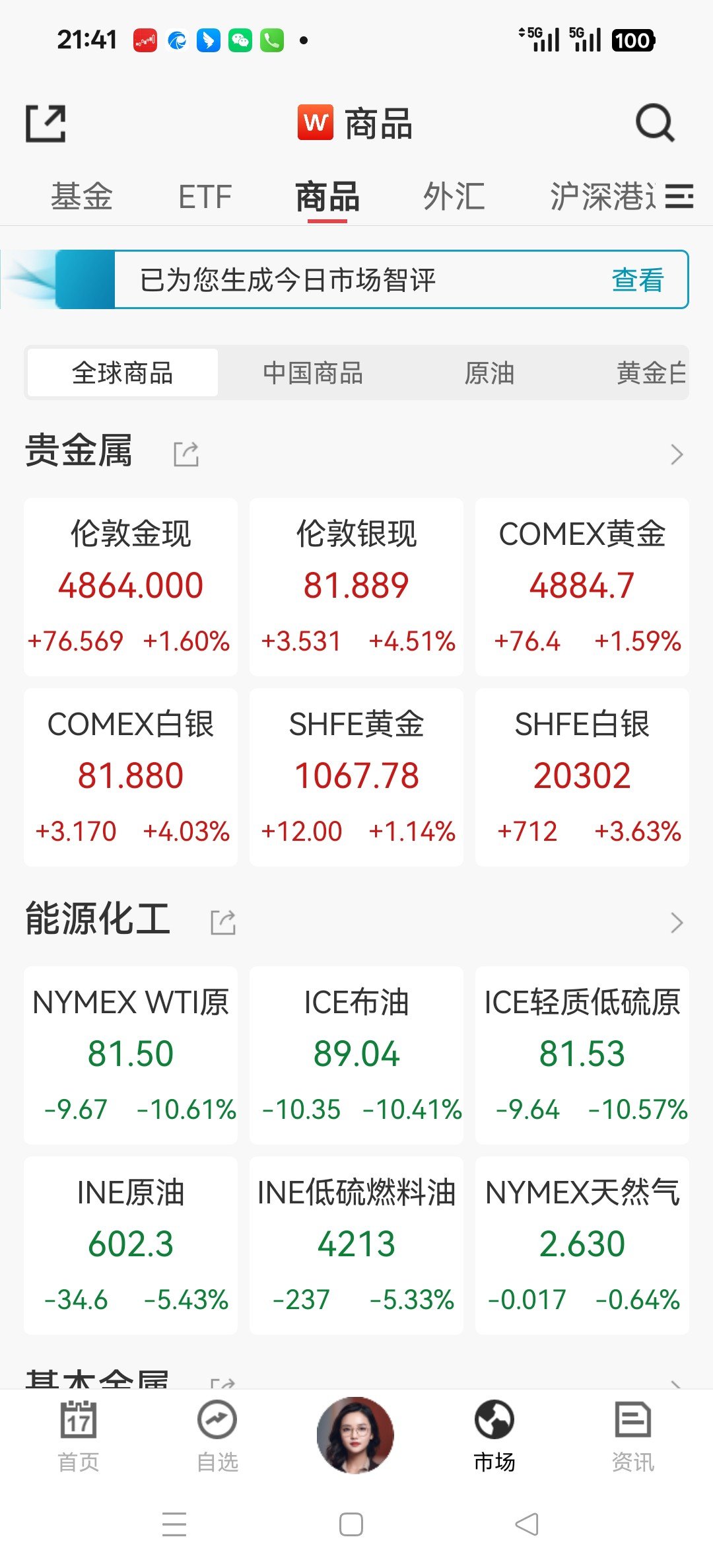 受消息影响,北京时间17日晚间21点半左右,国际油价大幅下挫,WTI原油期货价格一度暴跌超12%,布伦特原油期货一度暴跌超11%。WTI原油期货大跌报约81美元/桶;布伦特原油期货大跌报约89美元/桶。国际金价也掉头向上,COMEX黄金期货报4844美元每盎司附近。