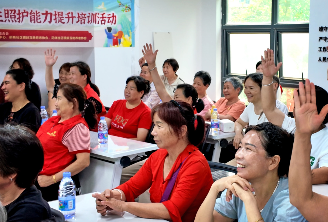 当天,明珠社区卫生服务中心医师为志愿者讲授老年人实际照护知识,涵盖春季“洋葱穿衣法”、血压监测要点、食疗搭配等实用内容,并手把手教授足三里、内关等穴位按摩手法。针对老人起床安全隐患,医师重点讲解“起床三步曲”,通过案例示范纠正“催老人快起”的常见误区。志愿者陈阿姨表示:“以前觉得照顾老人就是帮着买菜,现在明白还得懂怎么养。”
