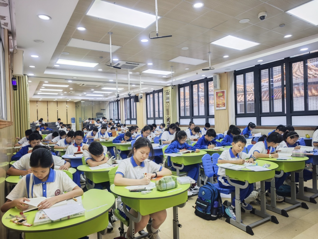 阅读再写作以“读懂那声叹息背后的重担”为主题。比赛现场,学生们奋笔疾书,文思泉涌,如行云流水般地在规定时间内完成作文。静谧的赛场只有“沙沙沙”的书写声。他们的作文构思精巧,情感真挚,以孩童那纯真且别具一格的叙事,把与经典相遇的成长故事生动地呈现。本次主题阅读活动也是学校红色教育的重要组成部分。活动以“赓续文化血脉,厚植家国情怀”为宗旨,通过阅读中华经典,提升学生人文底蕴及思辨能力,引导学生将个人成长与文化传承紧密相连。