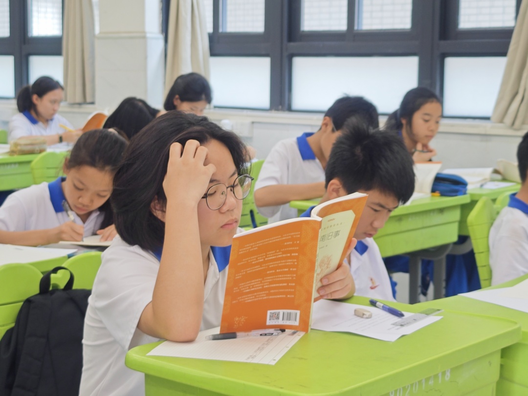 广大附中党委副书记李卫表示,阅读,是心灵的自我发现,是精神的自然生长,更是一生的修行。他告诉同学们,不带功利心的沉浸才是阅读的本真状态,并以“马拉松”寄语学子:阅读不在于瞬间爆发,而在于持久耐力;重要的不是读了多少,而是是否真心喜欢。“选择《城南旧事》作为决赛书籍,我们是经过了深思熟虑的,还征求高校中文系教授们的建议,他们都认为这是一本很适合的书。”广大附中图书馆馆长杨长军告诉记者,虽然书中所写的故事年代比较久远,但作者的文学语言,对人物、对环境的描写手法,在任何时代都是能用的。尤其在AI已经深刻地影响到我们生活的当下,书中那些隽永的描写,尤其是“那一声叹息”,AI是模仿不来的。杨长军表示,中学生的课业越来越紧张,“读闲书”的时间不可避免地受到了不同程度的挤压。在决赛这天,同学们用两个小时的时间,一起静心读完一本书,这对于他们而言,应该也是一段难忘的回忆。