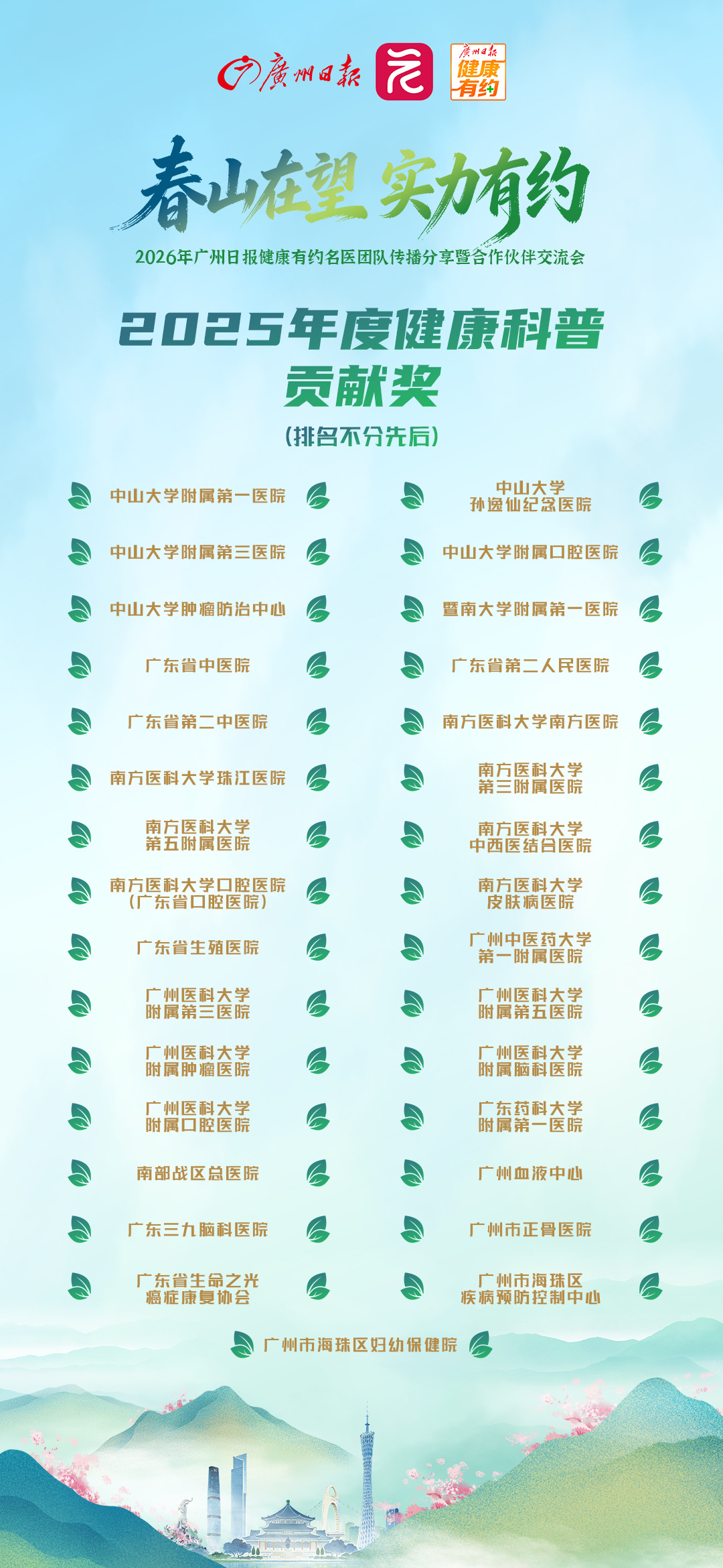 我们期待与广州日报健康有约继续携手,探索更多老百姓喜闻乐见的科普形式,让权威的医学知识飞入寻常百姓家,种在百姓心坎上。