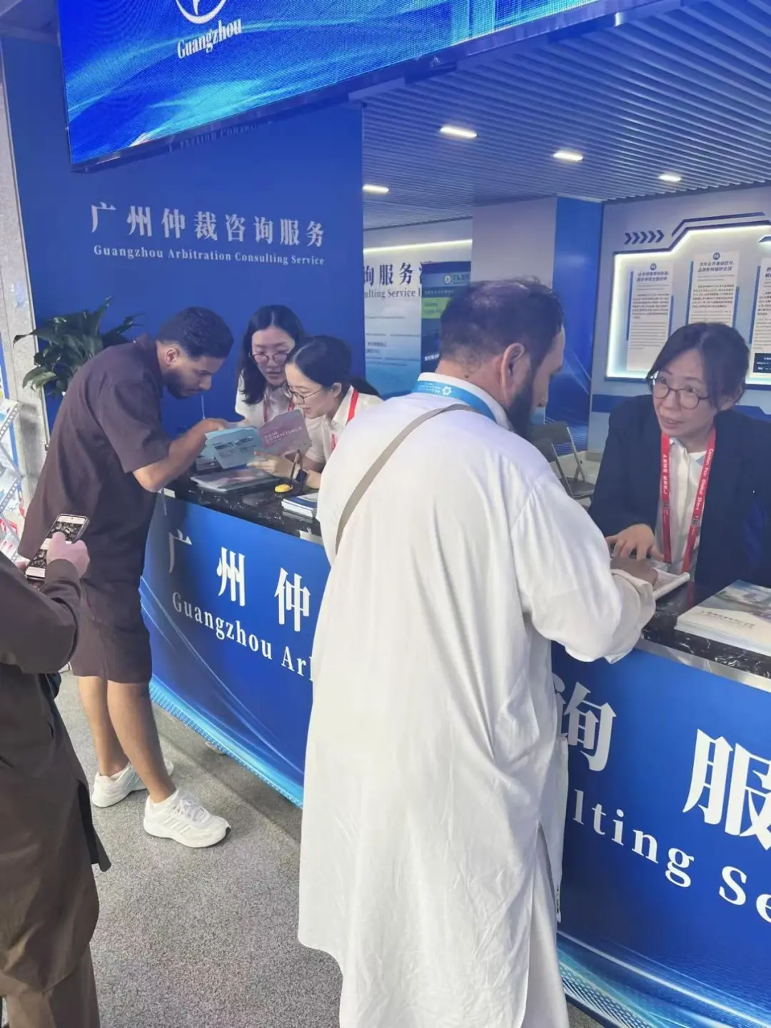 本届广交会期间,广州仲裁委专门组建一支由线下驻场服务、线上全天候值守组成的专业服务团队,共计70名专家。团队成员来自共建“一带一路”国家、中国港澳地区及内地相关地区,专业覆盖国际贸易、跨境投资、互联网金融、涉外知识产权等前沿领域,具备丰富的涉外争议解决与实务经验,为展会提供全方位、专业化的仲裁法律服务保障。截至展会第二天,广州仲裁委驻点值班已接待境内外客商40人次,来自14个国家和地区的参展商、采购商咨询仲裁法律服务。