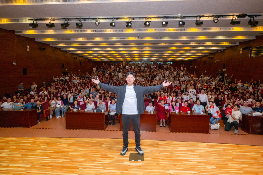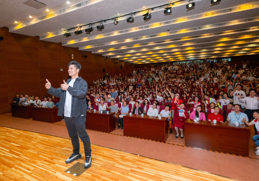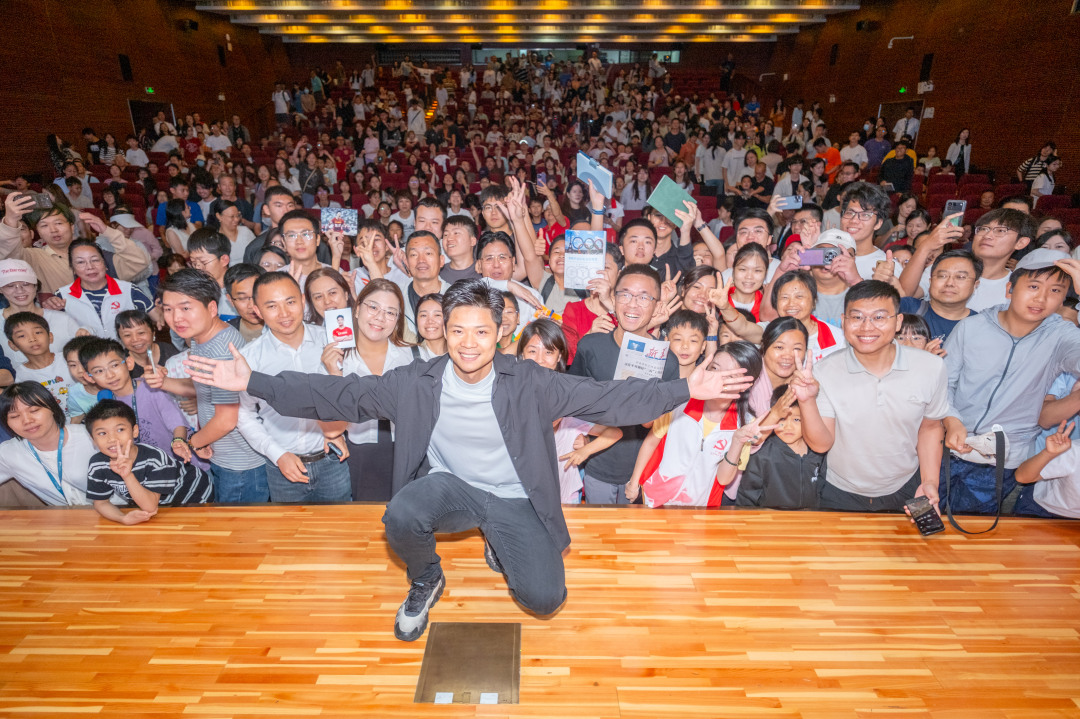 4月18日上午,暨南大学体育学院院长、教授、中国田径协会副主席、广东省田径协会会长苏炳添作客羊城学堂,讲述自己从赛场到讲台,从运动员到教学者的逐梦、圆梦与续梦的精彩故事。讲座结束后,苏炳添和现场观众合影留念。