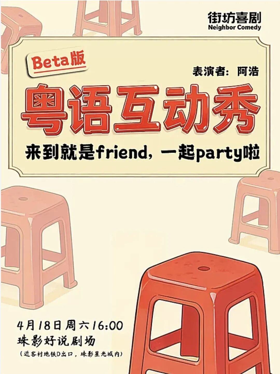沉浸式喜剧、粤语栋笃笑轮番上演……开心,快乐,互动,解压!在这里,开启你的爆笑吧!