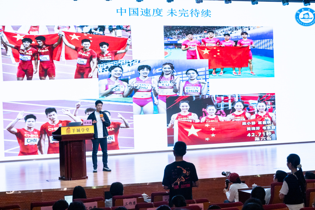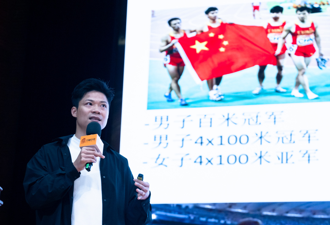 “中国速度,未完待续。”讲座的最后,大屏幕展示多张中国新一代短跑健将的比赛图,包括来自广东的陈冠锋、施君豪,他们都是苏炳添退役时点名的接棒者。完成交棒的苏炳添期待,中国短跑新生代成功接棒,未来站上更高的舞台,为“中国速度”增光添彩。