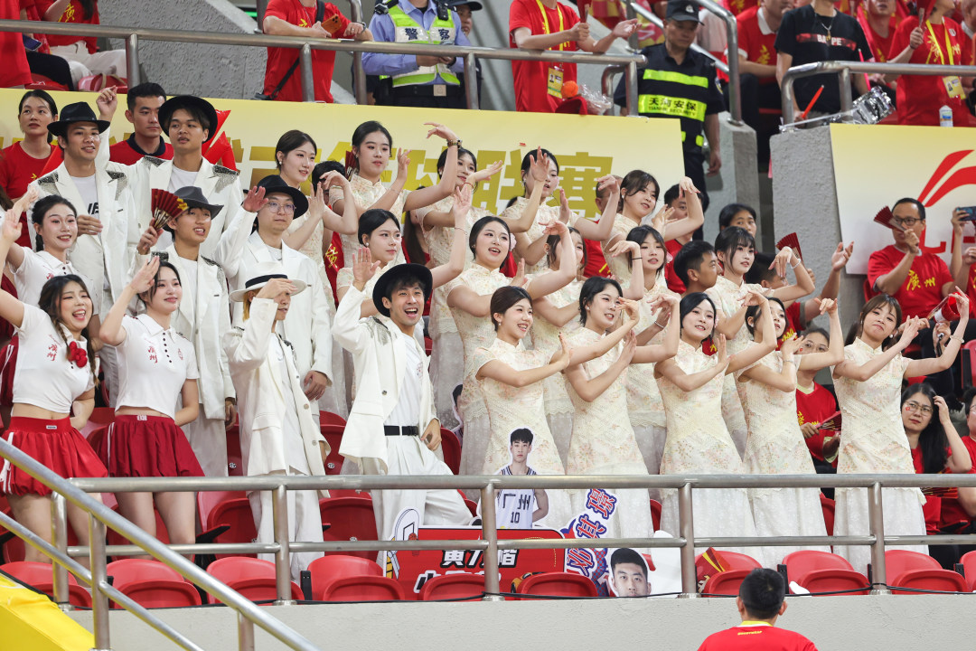 赛事未启,文化先声。从赛前暖场开始,浓厚的广府韵味便扑面而来。观众席上,“西关小姐”与“东山少爷”的演出,伴随着经典粤语歌曲《西关小姐》的旋律,营造了满满的氛围感拉满。紧接着,广府文化宣传大使、知名歌手梁山山以一首激昂的广州队战歌《势不可挡》点燃全场。