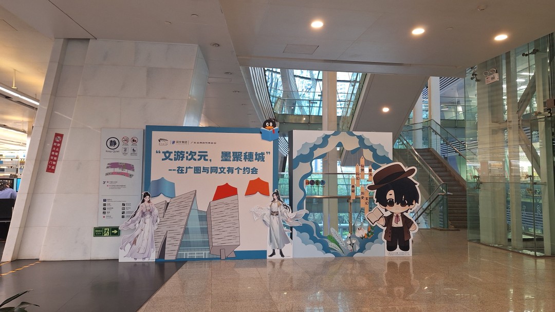 广州图书馆北三楼专门开辟网络文学专区。中庭最显眼位置精心布置“岭南潮·网文汇:广东网络文学名家名作”书展。现场陈列的《诡秘之主》《狐妖小红娘》《庆余年》等知名IP形象也吸引了众多读者驻足打卡。