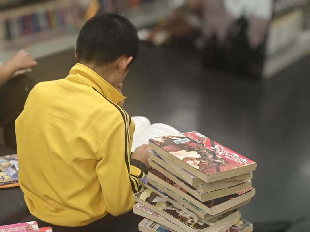 “考完我就来了,家都没有回,先来看书。”在北三楼网文专区,一位刚结束中考的学生迫不及待地来到广州图书馆。每到假期和周末,北三楼的网文书架旁便站满了读者,许多人直接拿起一本书席地而坐读了起来。“《斗罗大陆》在哪儿”是馆员被问得最多的问题之一,网文专区的书架总是最快被借空,需要频繁补架。