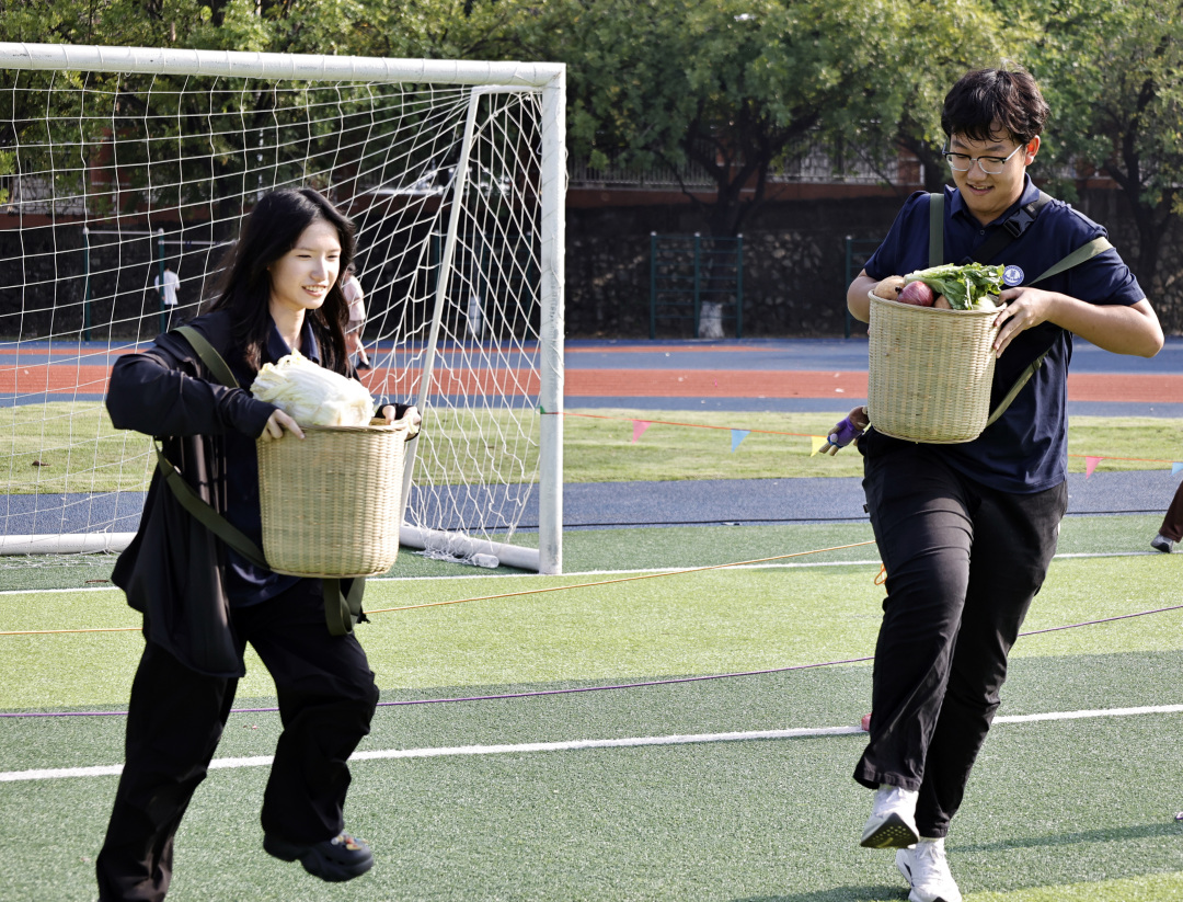 赛场之外,第三届农耕趣味运动会同步火热开展,“要快乐鸭”套鸭子、抛秧赛、独轮车赛跑等6大农事特色项目备受师生欢迎。同学们化身“农耕体验官”,在套鸭嬉戏中感受田园乐趣,在抛秧、独轮车竞速中体验农事劳作,将传统耕读文化转化为趣味竞技,在欢声笑语中厚植知农爱农、强农兴农的情怀。