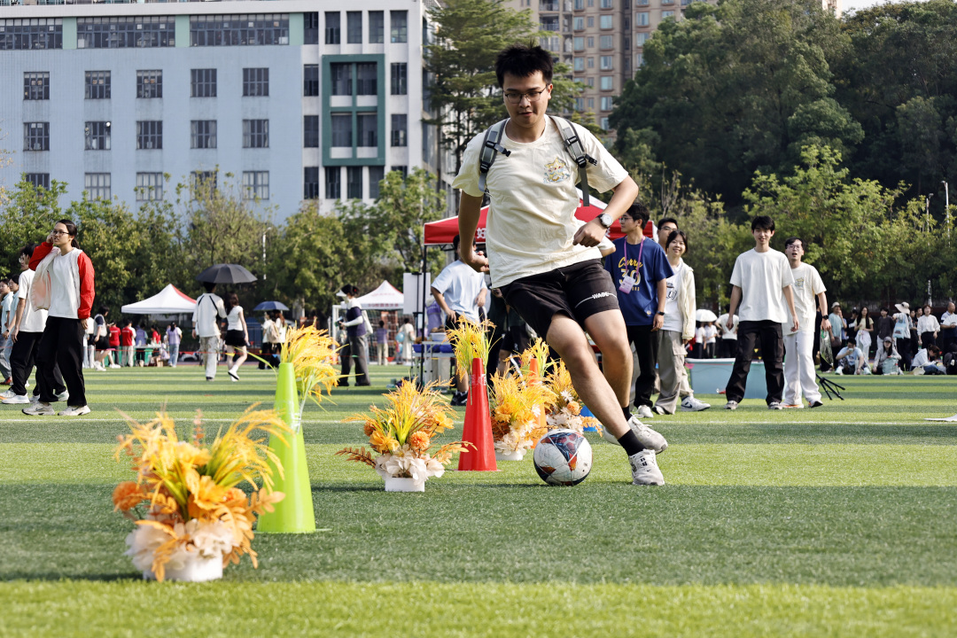 同时,心理健康节游园、体重管理、AED急救教学、研究生趣味足球体验等多元活动一站式开展,植趣疗愈、压花手工、健康科普等环节,为学子提供身心放松的空间,普及健康知识与急救技能,构建“体育强体、心育润心、文化铸魂、劳动赋能”的一体化育人场景。