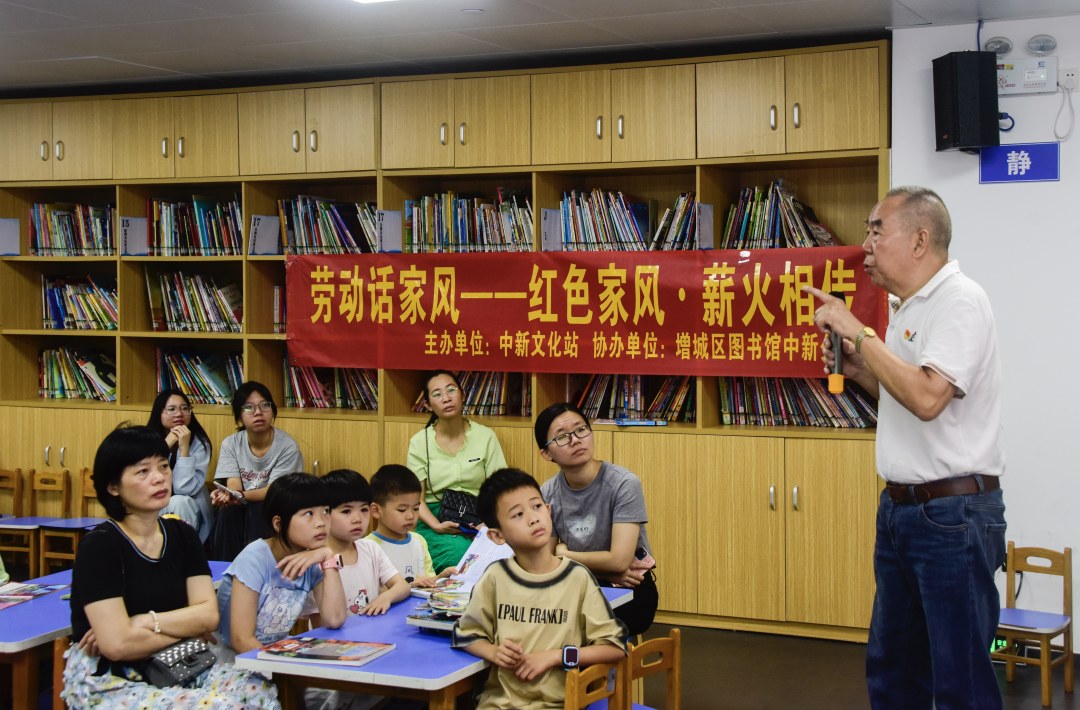 “我父亲常说,做人要忠诚担当,懂得感恩,感谢党和人民给你的一切。”4月19日上午,增城区图书馆中新分馆内,一位年逾七旬的老共产党员站在讲台上,声音沉稳而深情。台下,几十名群众和青少年静静聆听,有人频频点头,有人拿出手机拍摄下精彩的片段。这是中新镇“劳动话家风——红色家风·薪火相传”主题活动的现场一幕。