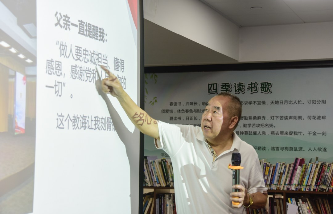 活动现场,吴志翔深情讲述了其父亲——抗日老战士吴当鸿的英勇事迹与家风传承故事。他用生动活泼的语言,向小朋友还原了吴当鸿当年参加活捉“老鼠精”匪徒的经过,听得孩子们捧腹大笑,也让孩子们了解到今天的幸福生活来之不易。此外,他还结合自身成长经历,阐释了红色家风在新时代的时代价值与教育意义。