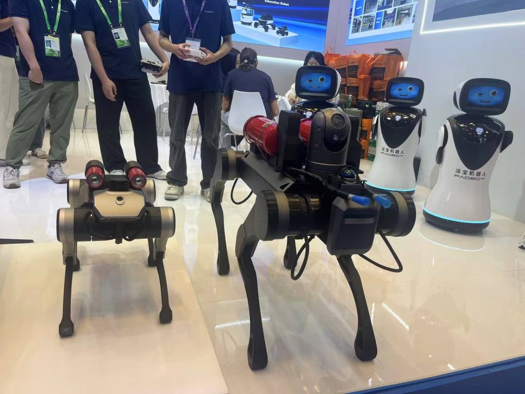 在广东派宝机器人有限公司的展台前,室外安防巡逻机器人和巡逻狗也吸引了众多参展商的兴趣,展台前被围得水泄不通。继去年公司主打室内安防机器人参展大受欢迎后,今年,公司的室外安防机器人也正式在广交会亮相。“我们的室外安防机器人可以在夜间巡逻,如果发现有危险或者意外的情况,就会发短信给保安。这样即便在晚间、复杂的工况下,我们的安防巡逻机器人和巡逻狗也能出动,还能节省人力。”该公司副总经理舒绪琼向记者介绍,本届广交会期间,派宝机器人的意向订单十分火爆。