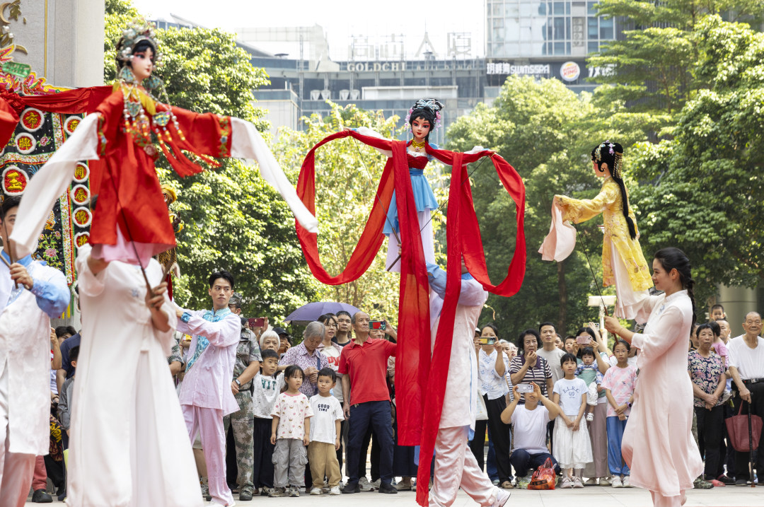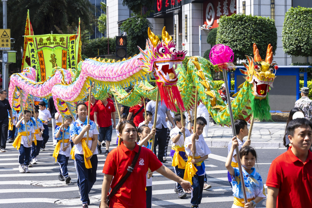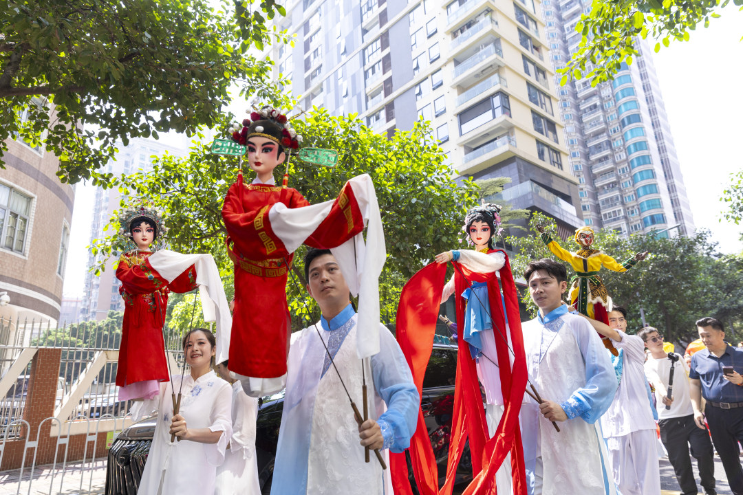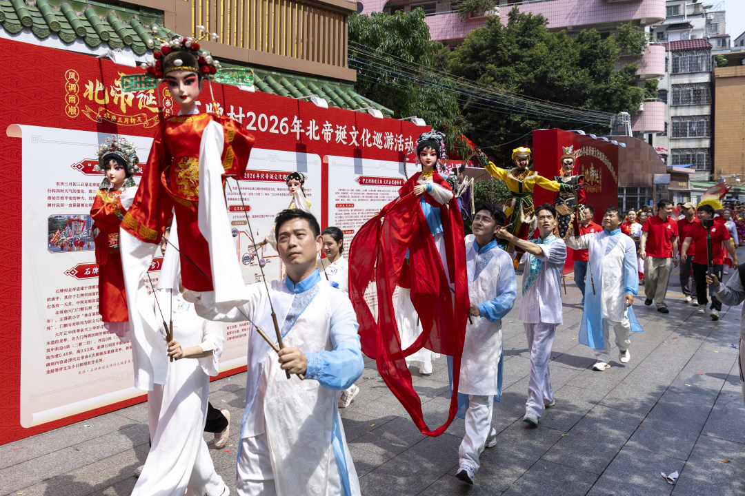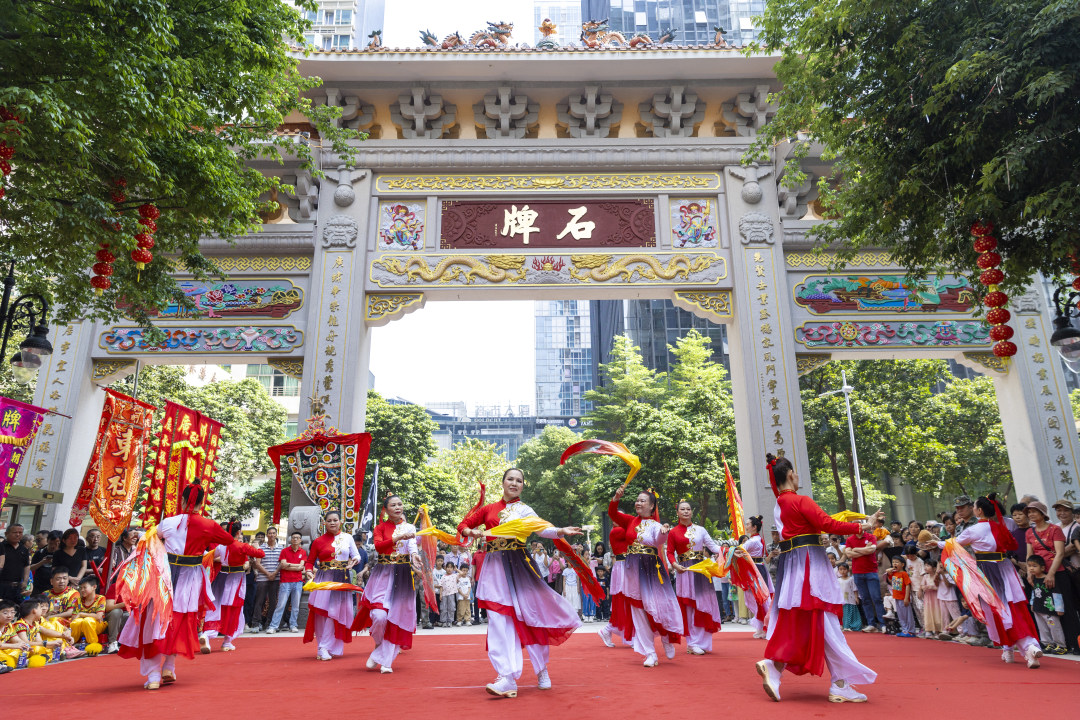 当日上午,一场热闹的北帝诞文化巡游活动在石牌村举行。锣鼓喧天,15个方阵队伍从石牌小学出发,途经黄埔大道、珠江新城安居房片区及新庆村小区,将海安路、海居路、海乐路、海业路等路段串联成行,以安居乐业为美好寓意,为街坊邻里送上祝福。