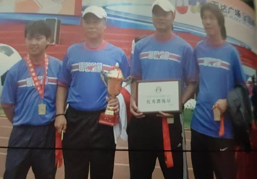 2012年,彭锦波(右二)带领广州U15梯队获得全国冠军并获优秀教练员。