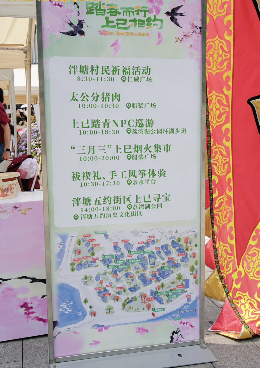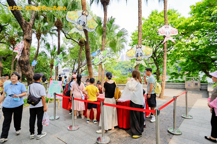 三月初三也是上巳节,有“洗濯去垢”的古老习俗。活动期间,主办方沿荔湾湖的水岸景观设置木勺,游客可以用木勺舀起湖水净手,一旁设有“放飞烦恼”环节,孩子们在风筝上写下心事,放鸢逐忧。