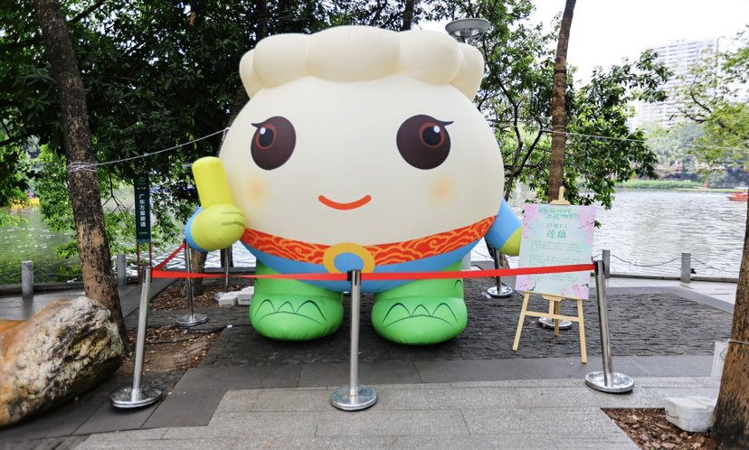 “泮塘五秀”莲藕、马蹄、菱角、芡实、茨菇是泮塘最有名的风物,也是荔湾民俗活动的人气IP。今年,“泮塘五秀”再次以全新的巨型萌系气膜形象回归,散落在公园各处,引得市民游客争相合影,唤醒人们对泮塘水乡的记忆。
