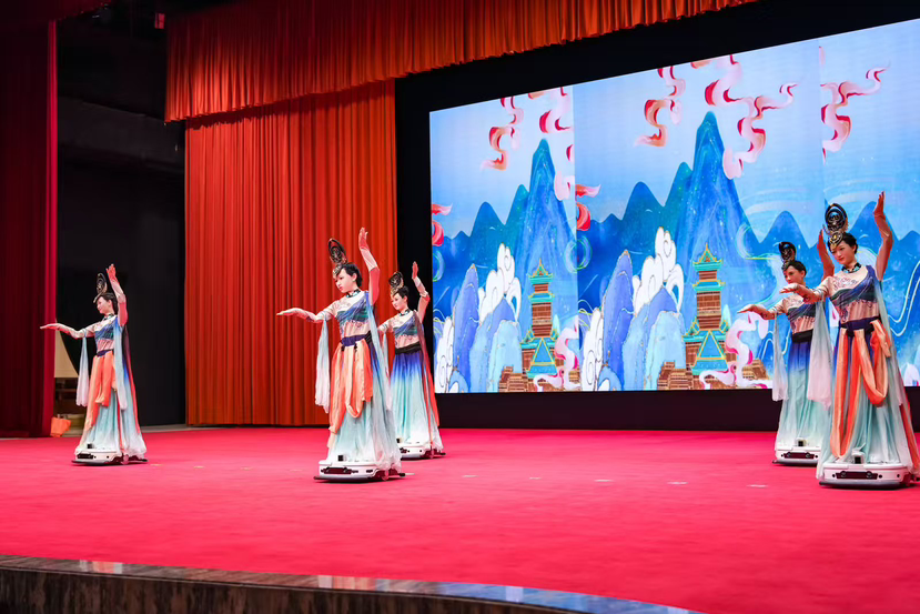 大会在科技与艺术交融的机器人舞蹈《敦煌飞天》中拉开帷幕。节目由花都区个私协会副会长单位广州清宝机器人有限公司呈现,巧妙融合敦煌古韵与现代机器人技术,既展现了科技为民营经济注入的鲜活动力,也昭示了创新驱动下民营经济的广阔前景。演出以“科技+文化”的独特魅力,为整场大会奠定了“创新、活力、共赢”的基调。