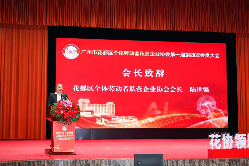 花都区个体劳动者私营企业协会会长陆世强致开幕词。他回顾了协会秉持服务初心、担当发展使命的成长历程,从党建品牌建设、企业纾困服务、资源协同整合、社会责任践行等方面系统总结了协会工作成效。陆世强表示,协会将继续以服务企业为核心,持续提升服务效能,搭建政企沟通与资源对接的坚实平台,全力支持个体私营企业成长壮大,为花都高质量发展贡献更多力量。
