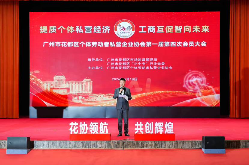 4月18日,广州市花都区个体劳动者私营企业协会第一届第四次会员大会在花都区委区政府大礼堂隆重召开。大会以“提质个体私营经济 工商互促智向未来”为主题,紧扣时代脉搏,汇聚政、企、民多方智慧,通过科技展示、党建品牌推介、重大项目签约、优秀会员表彰等系列议程,为花都区个体私营经济高质量发展注入强劲动能。广州市“小个专”行业党委、花都区委区政府、花都区市场监管局、花都区“小个专”行业党委、各相关部门、各街镇相关负责人,以及全区个体私营市场主体代表逾700人齐聚一堂,共绘发展新蓝图。