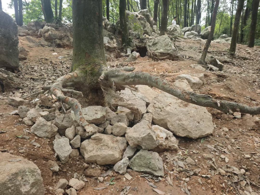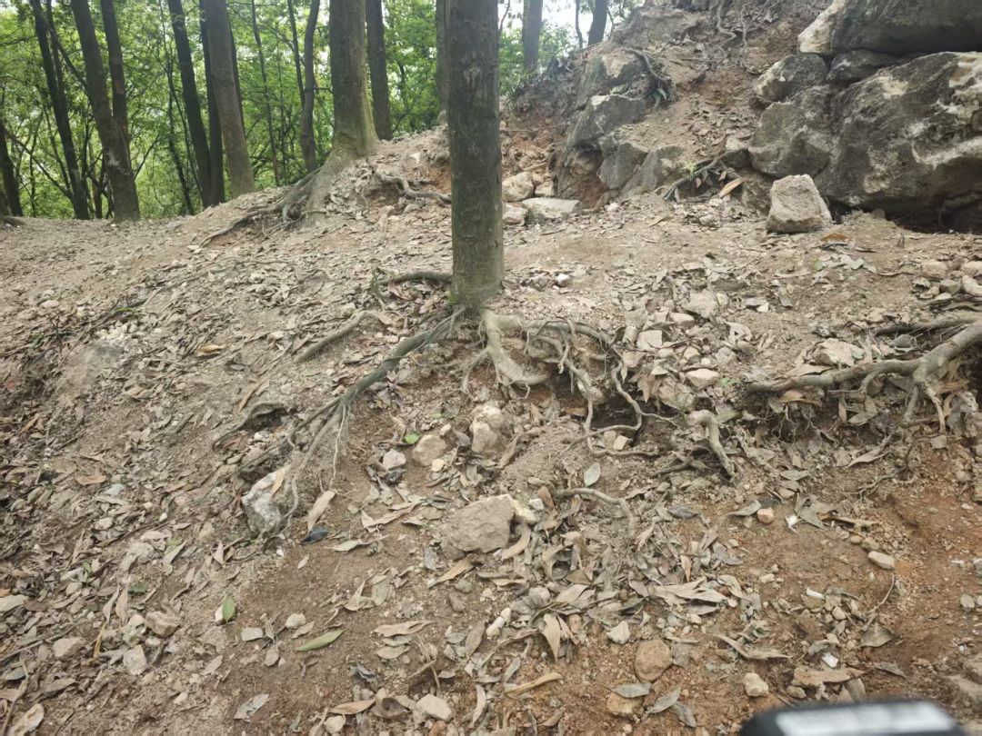 对自己,塌方风险就在脚下。在松动的山体上挥舞铁镐,一旦发生塌方,后果不堪设想。山体表面被挖得坑洼遍地,多处出现深坑洞穴,部分树木根部土壤被掏空。当挖宝者埋头在坑里挖掘时,头顶的岩土随时可能崩塌。尤其是在雨季,土壤含水率升高,塌方风险成倍增加,把自己的生命安全置于险境。