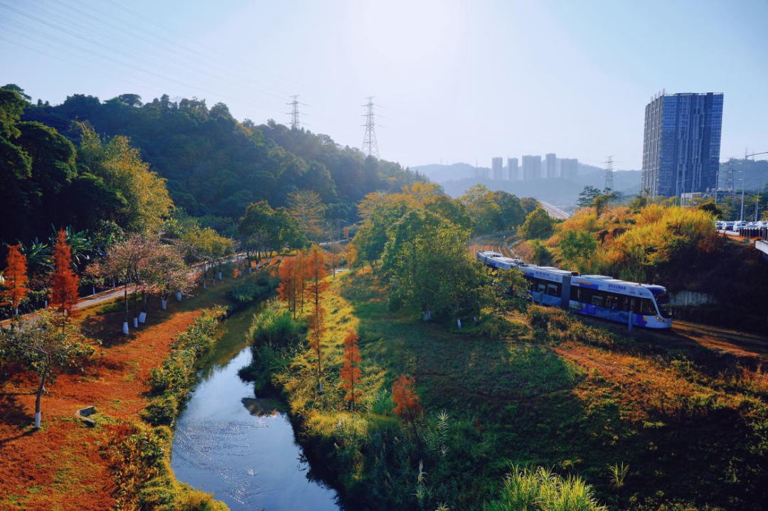 其中,体育公园面积达30公顷,其中28公顷为森林覆盖,运动设施与自然生态无缝衔接;牛角岭公园入选华南国家植物园城园融合体系专类植物展示园,登顶可俯瞰科学城全景;狮子岭公园依托山体地形设计登山步道,是一座现代休闲运动型公园。3条徒步环线(双园活力环约4.41公里、林园叠翠环约5.35公里、城园繁锦环约7.3公里)满足不同体力的游客需求。
