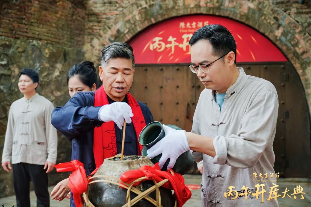 活动现场,在广东石湾酒厂集团董事长、陈太吉酒庄第七代庄主范绍辉的带领下,中国白酒首席品酒师梁思宇,国家级评酒委员何国良、吴安杏、潘康华等多名资深酿酒师傅步入“丰太洞”取酒。随后,范绍辉庄主庄重宣读丙午年《开库赋》,以铿锵之音表达陈太吉酒庄对自然与传统的尊崇,体现振兴中国白酒酒庄的使命与自信。祭酒结束后,北帝头酒作为天赐福泽,分赐现场嘉宾品鉴。仪式结束后,陈太吉酒庄于“丰太洞”前举办“开库老酒,万众同享”庆祝活动,新出库的洞藏老酒现场免费供市民品鉴,让所有市民一起体验这份吉庆喜悦与欢乐,万众同享。