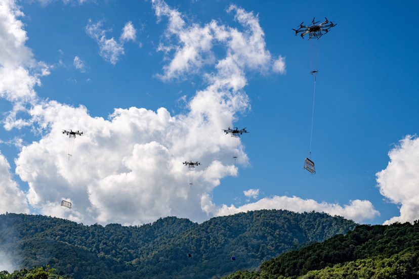施工过程中,创新采用“直升机+无人机”协同运输模式,30多架无人机与2架直升机组成空中编队,运输总量超5000吨,生态扰动减少90%以上,使88%的作业面实现“零道路通达”;在亚洲象活动区域,设立护象员,通过亚洲象预警APP、红外相机、无人机基站和生态监测站实时追踪象群轨迹,确保工程建设与象群活动互不干扰;推广使用新型紧凑型铁塔,优先选用适合本地生长的植物进行绿化,提升变电站护坡、草坪的水土保持功能,实现技术与生态双赢。