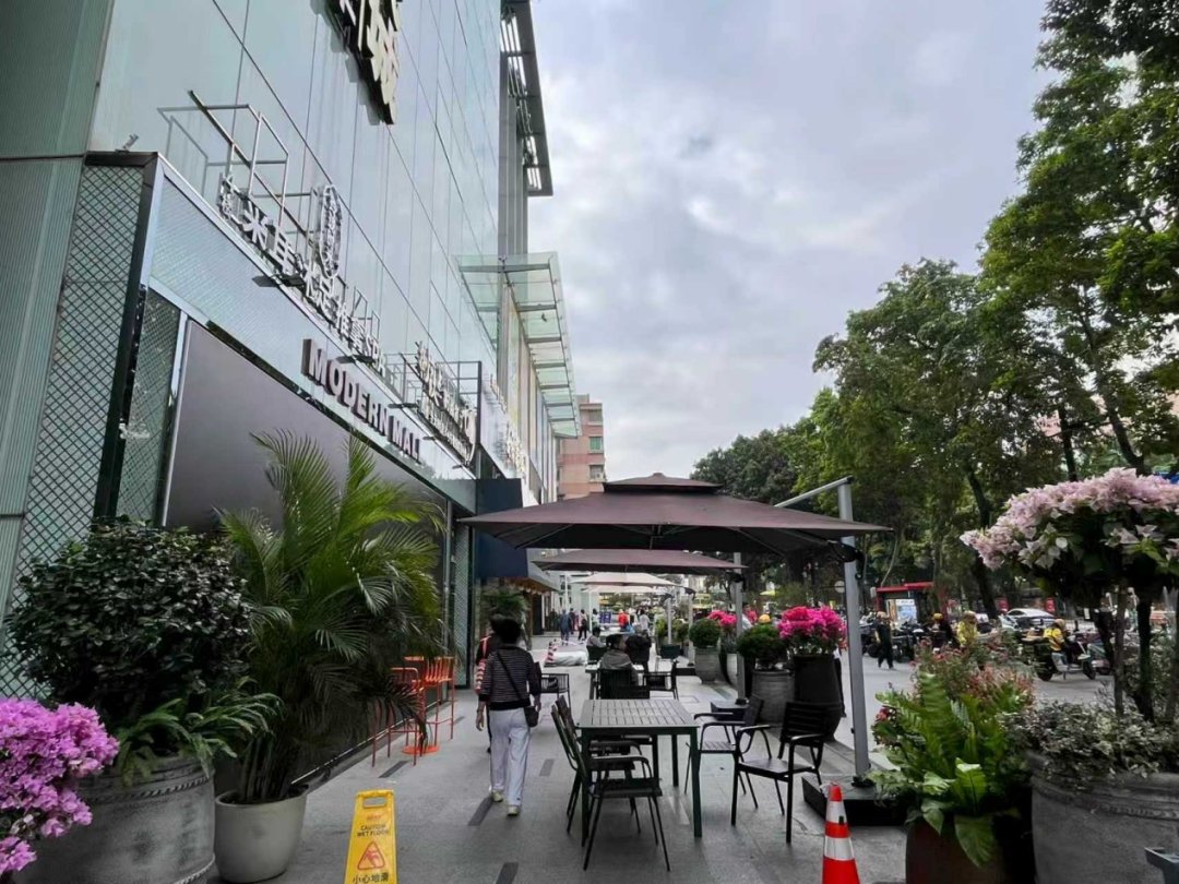 “做好门前事,环境整洁了,生意自然会红火起来。”东山锦轩现代城广场相关负责人介绍,该广场扎实推进“门前三包”责任制落地见效,物业人员常态化规范非机动车停放秩序,切实维护广场公共环境秩序;广场内餐饮、住宿类商户主动向街道申请在广场红线内闲置区域打造盆景景观与休闲休憩空间。通过系列举措,广场吸引力与客流量显著提升,推动城市精细化管理与商业经济提质增效双向共赢。