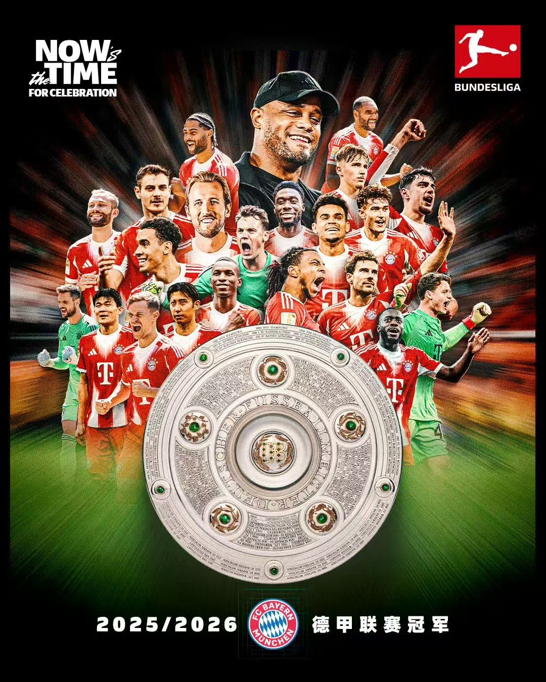 拜仁提前4轮卫冕!2025—2026赛季欧洲5大联赛首支冠军球队揭晓。