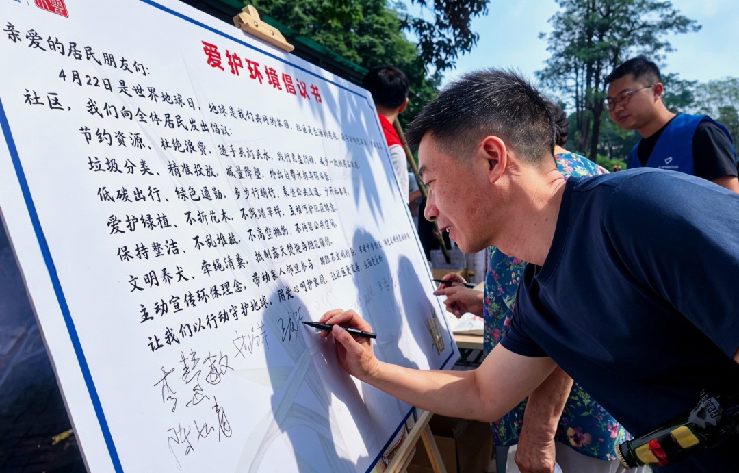 不少居民主动参与环保倡议签名,郑重签下自己的名字,承诺以实际行动守护家园。活动结束后,志愿者对现场进行全面清扫,以身作则践行环保理念。