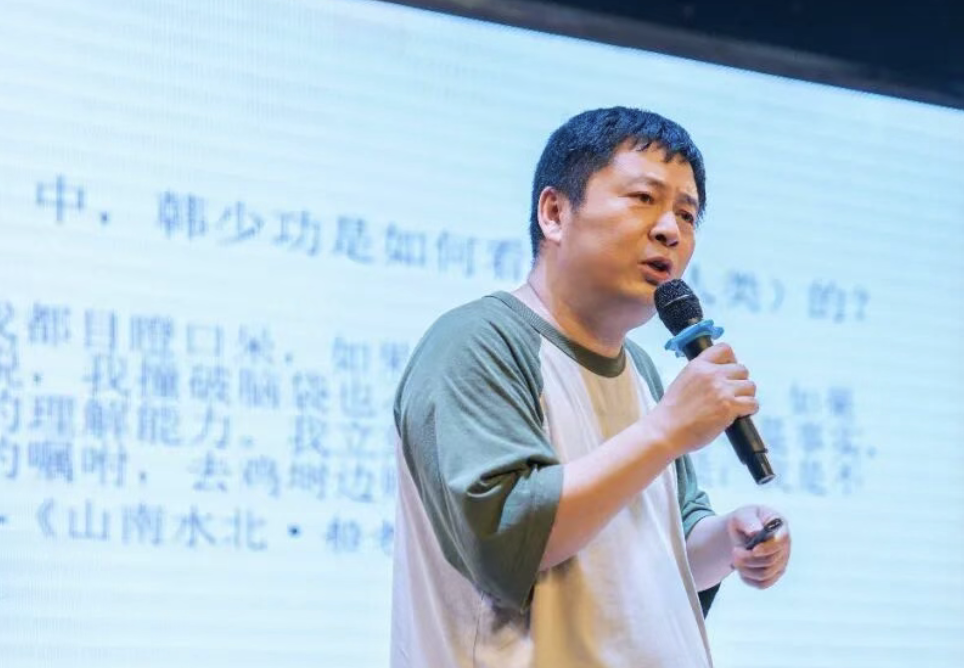 活动现场,雪弟从韩少功2000年迁居汨罗八景乡的经历切入,解析《山南水北》作为“精神原乡叙事”的独特价值。他指出,这部作品延续了《马桥词典》对乡土文化的挖掘,但更侧重于以“在场者”的视角记录乡村生活,韩少功用细腻的笔触描绘草木荣枯、虫鱼鸟兽,让读者感受到万物有灵的自然哲学。雪弟特别提到,书中“死亡是另一个光荣而高贵的过程的开始”等观点,打破了人们对生命的刻板认知,传递出“万物平等、循环共生”的生态智慧。