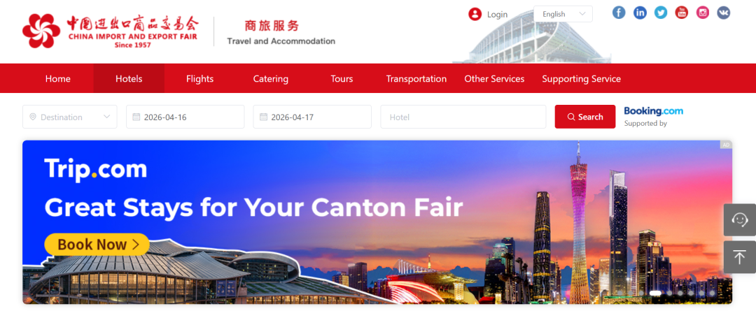广交会客商通过携程国际版平台,一站式预订机票、酒店及旅游产品,平均预订时长仅约6分钟,减少80%的预订耗时。在携程搜索“广交会”“Canton Fair”等多语言关键词,可直接跳转展会专页,一站式订购附近酒店、景区门票、餐厅推荐,以及包含专车接送、地陪翻译、工厂考察的“广州商务专线”定制游。