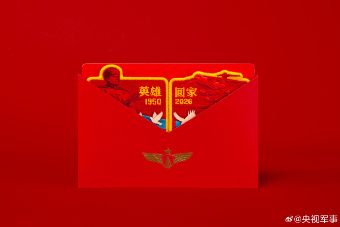 空军还同步发布了接迎任务标识。标识由志愿军战士雕塑、中国人民志愿军胸章、运-20B与4架歼-20编队、新时代官兵、和平鸽等图案组成,配有“英雄1950”“回家2026”字样,寓意着英雄回家、血脉传承,寄托着铭记历史、缅怀先烈的真挚情感。