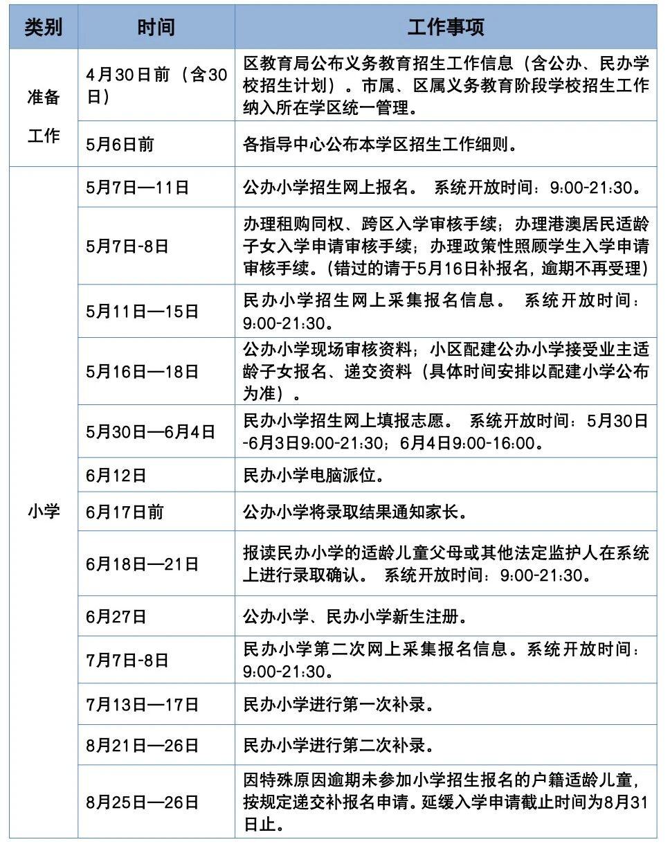 (二)5月7日—5月8日,租购同权学生、跨区入学学生、广州市政策性照顾学生及港澳居民适龄子女向属地教育指导中心申请入读小学一年级(错过的请于5月16日补报名,逾期不再受理)。