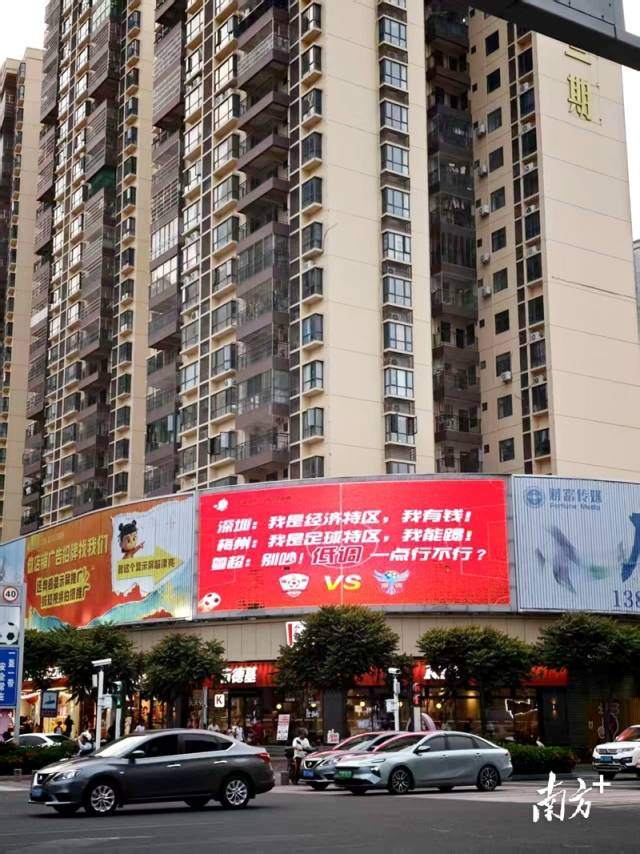 “深圳再有钱,我也只拿3分!”“搞钱谁也搞不过,踢球谁也踢不赢!”……4月17日,粤超梅州队对阵深圳队的喊话海报,在主场梅州五华的户外大屏集体“刷屏”,一句句幽默霸气文案,直接把4月26日19:30五华惠堂体育场即将上演的粤超首轮对决,提前升温,拉满期待值,传递出梅州队坐镇主场、誓拿首胜的决心。