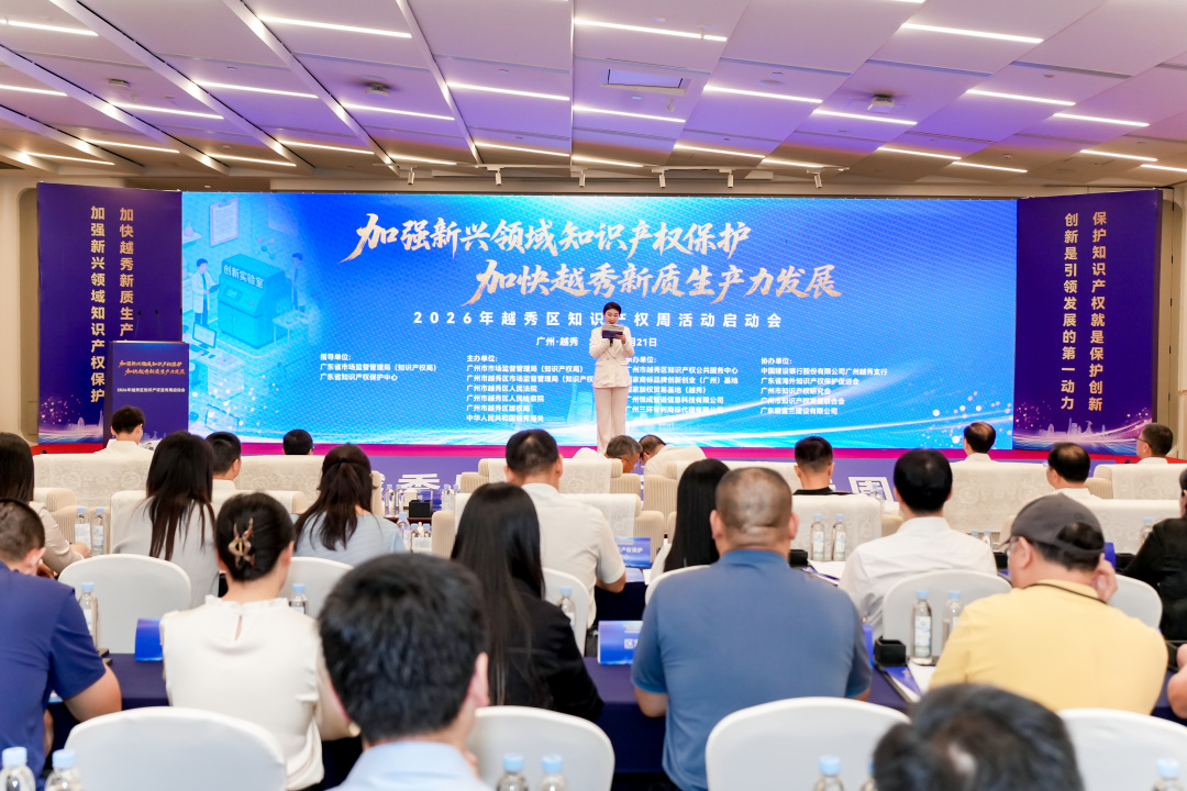 4月21日上午,以“加强新兴领域知识产权保护、加快越秀新质生产力发展”为主题的2026年广州市越秀区知识产权宣传周启动会在广州越秀国际会议中心举行,拉开了越秀区知识产权宣传周系列活动的序幕。