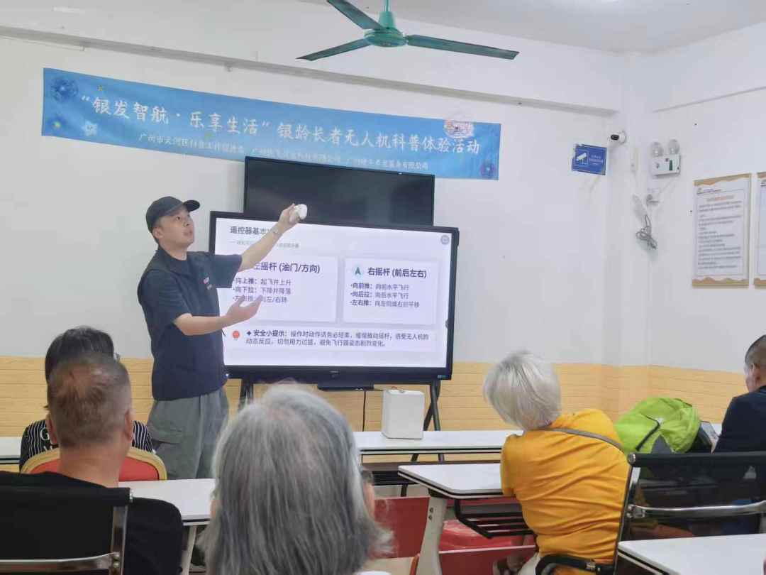活动以无人机课程为载体,围绕“知识普及、趣味实操、安全护航”三大核心内容,结合长者认知特点定制教学模式,开展有温度的知识传播与有趣味的实践体验。
